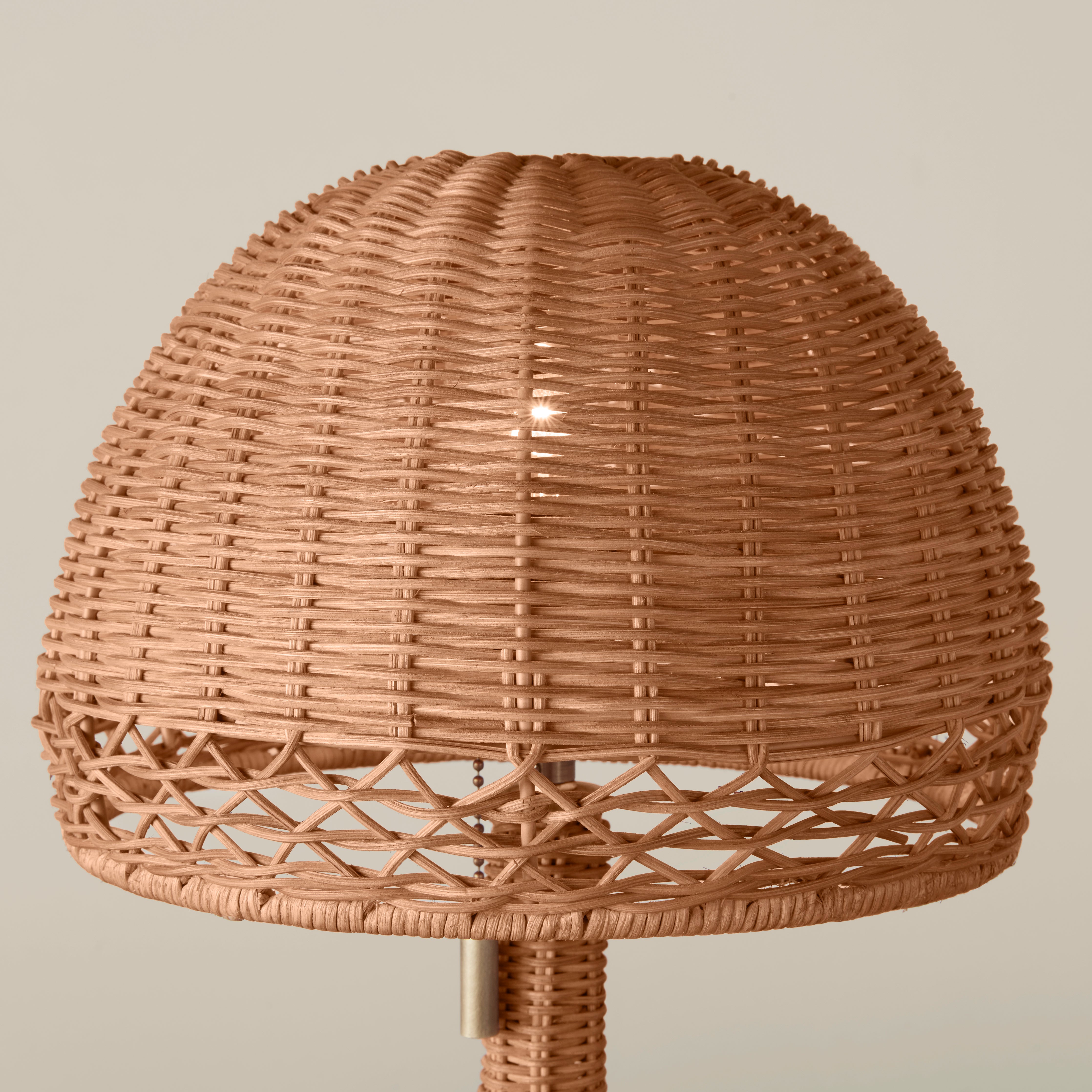 The Augusta Mini is our woven take on a Victorian classic Tiffany lamp, now available in a petite size. Its sculptural silhouette is at once light, airy and grounded. Rich with texture and old world details, including a vintage-inspired twisted cord, this lamp will imbue any home with warmth and charm. Perfect for bedside tables, desks or kitchen corners.