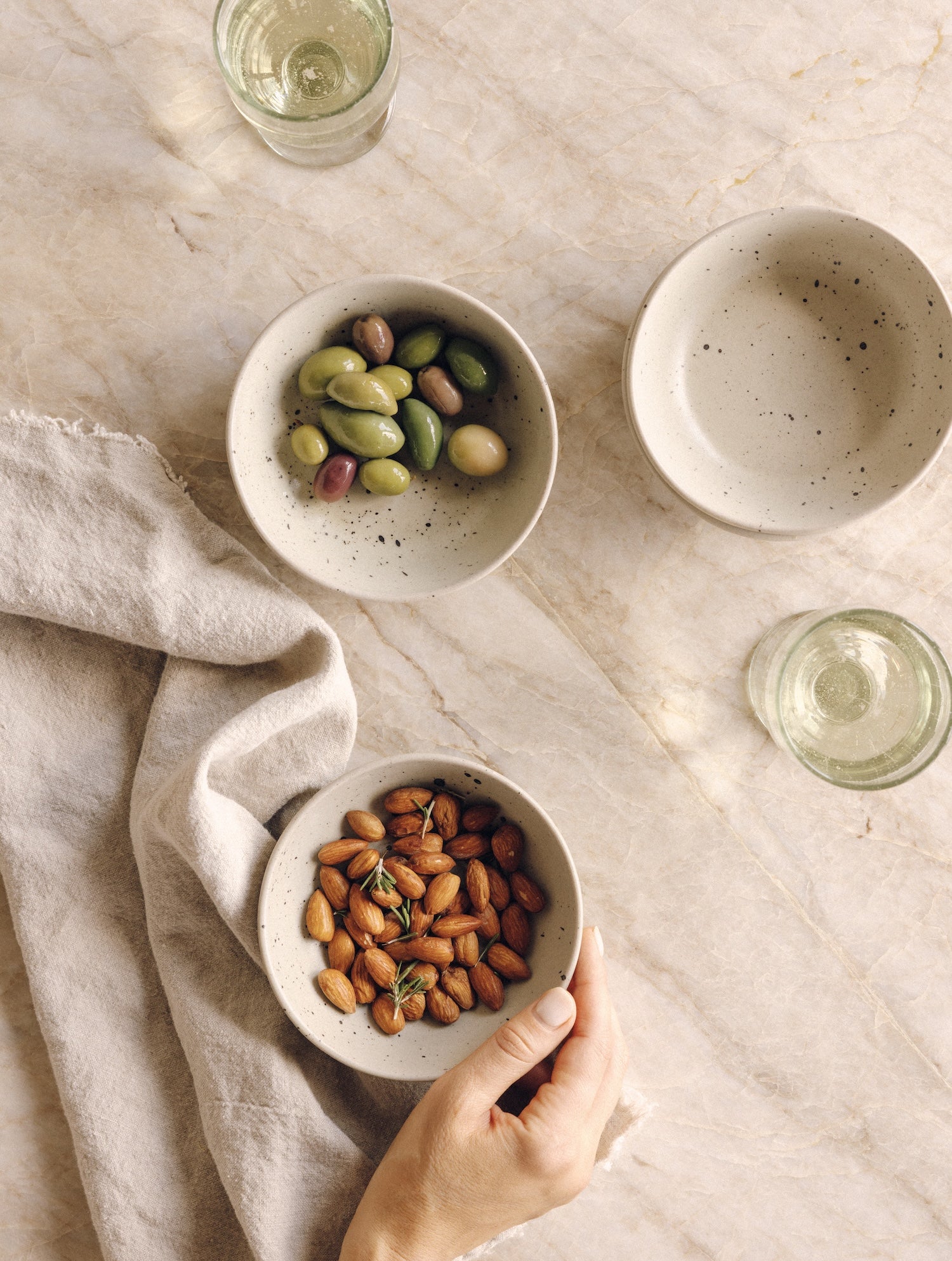 Small but mighty, the Snack Bowl is the one we reach for throughout the day—morning oatmeal, midday hummus, late-night ice cream. We designed these with organic curves and a smooth bottom for easy stacking on our open shelves. Each one is handcrafted by artisans in Mexico, with a speckled matte glaze that ensures each plate is one-of-a-kind. Place them around the coffee table with nuts and olives, or bring one into your own daily ritual—you'll find yourself reaching for this bowl more than just about any other piece.